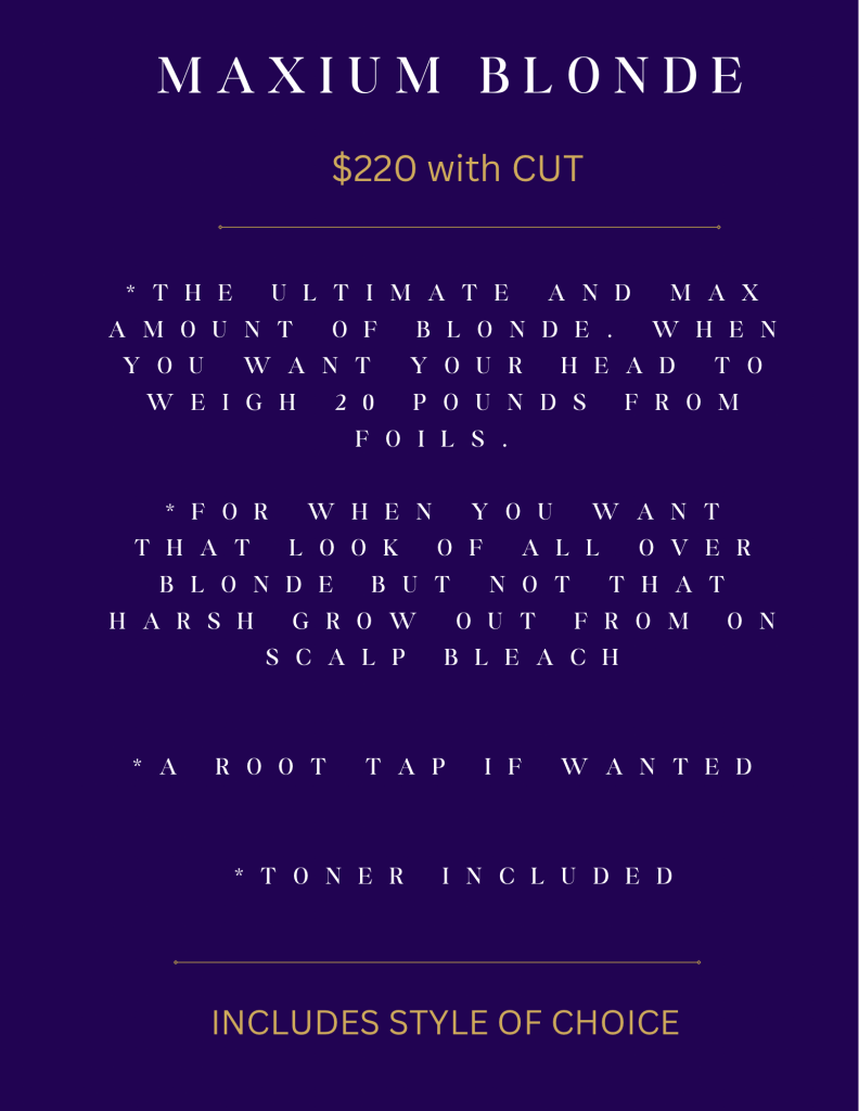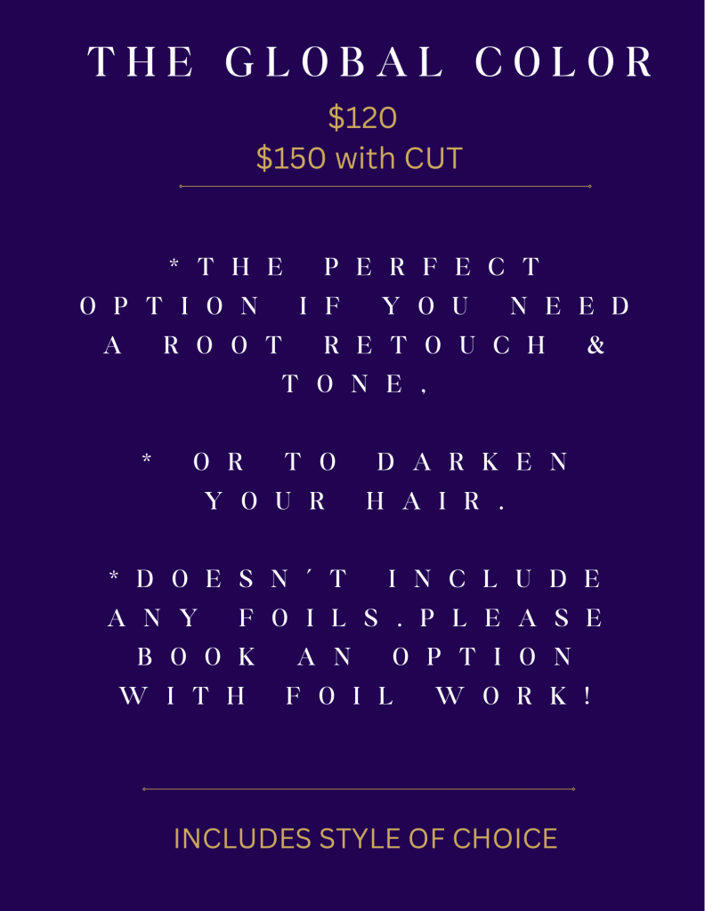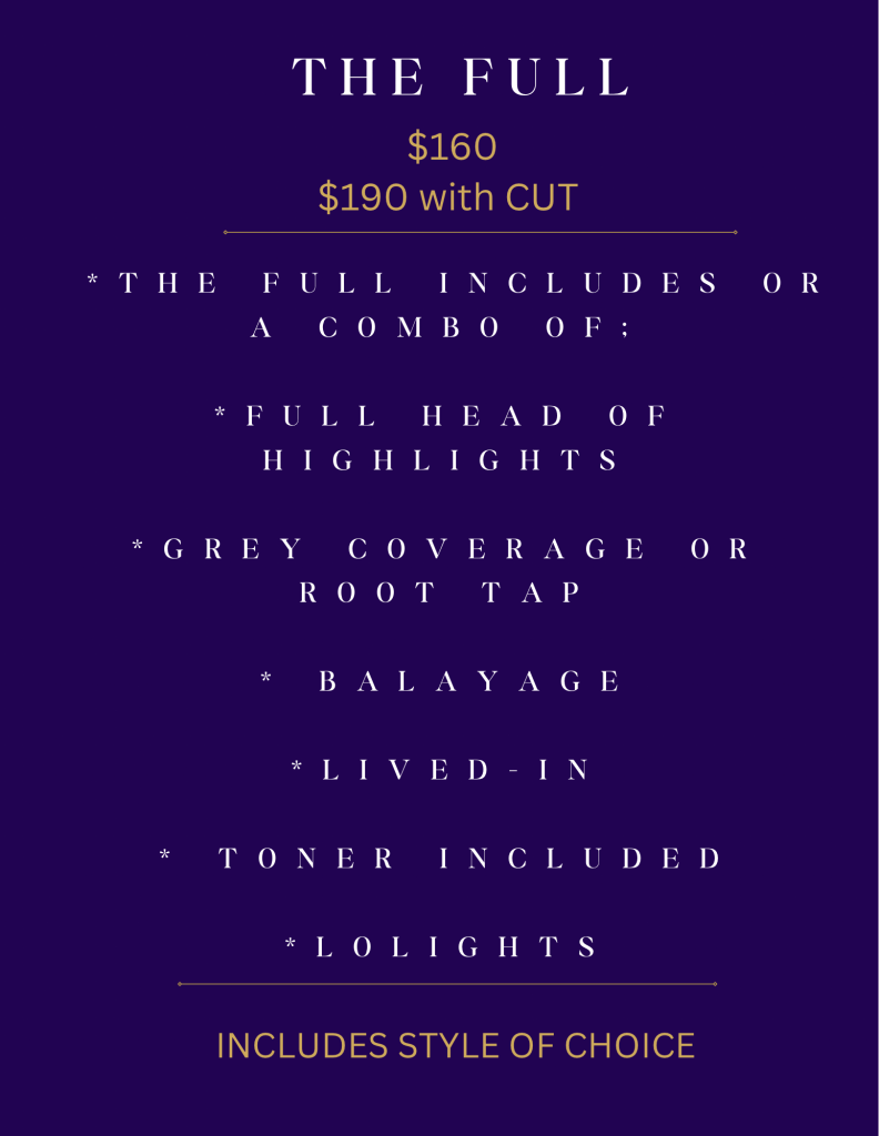 I don’t just offer hair services, I offer packaged solutions. I call these Color Sessions. This means you no longer need to book a highlight, haircut, style etc. Simply choose the session that most suits the results you are looking for, and I will get you there! Prices are subject to change with higher than normal product or time use.